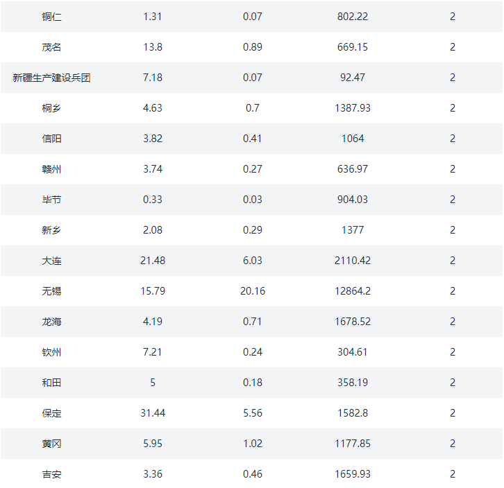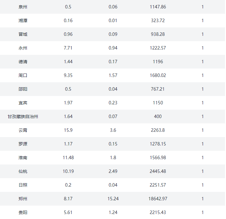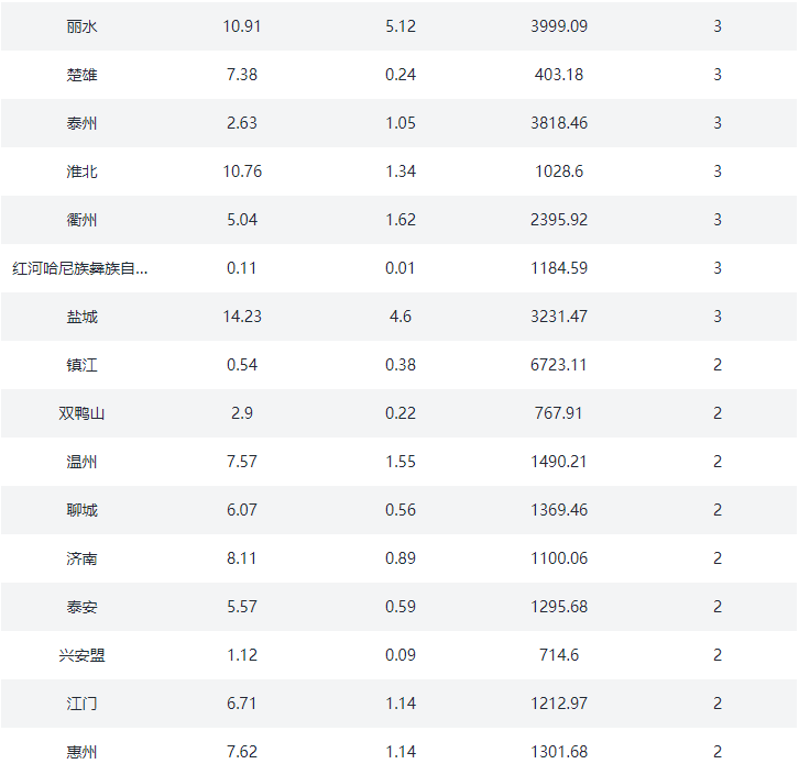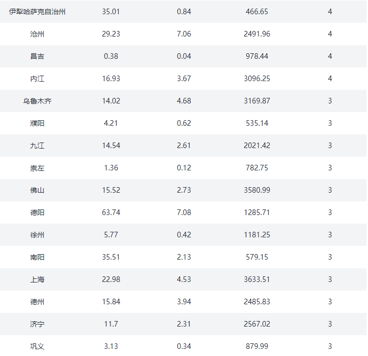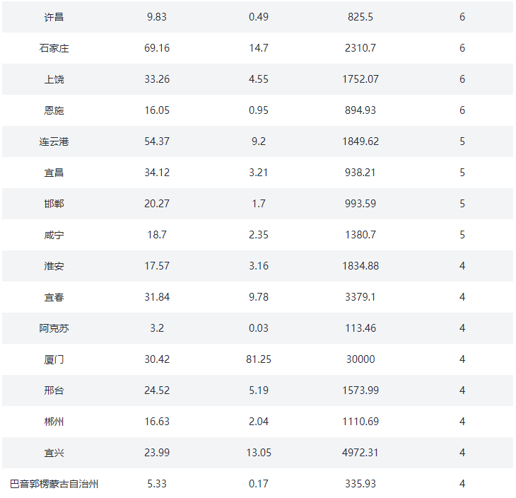 ③.三四线城市:沧州、东营、邯郸、肇庆、汕头、丽江、三亚、扬州、江阴、泰州、芜湖、漳州、九江、常熟、廊坊、保定、清远、张家港、昆山、镇江、宜兴、淮安、舟山、湖州、盐城、晋江、西宁、洛阳、宜昌、丽水、马鞍山、三明、衢州、义乌、秦皇岛、株洲、衡阳、岳阳、承德、韶关、遵义、德阳、海宁、慈溪、余姚、海门、启东、太仓、安庆、淮南、六安、桐乡、日照、邢台、张家口、常德、衡水、资阳、德清、嘉善、大厂、固安、儋州、陵水、香河、淳安、建德、桐庐、池州、益阳、定安、保亭、澄迈、万宁、燕郊、文昌、五指山、琼海(78)个