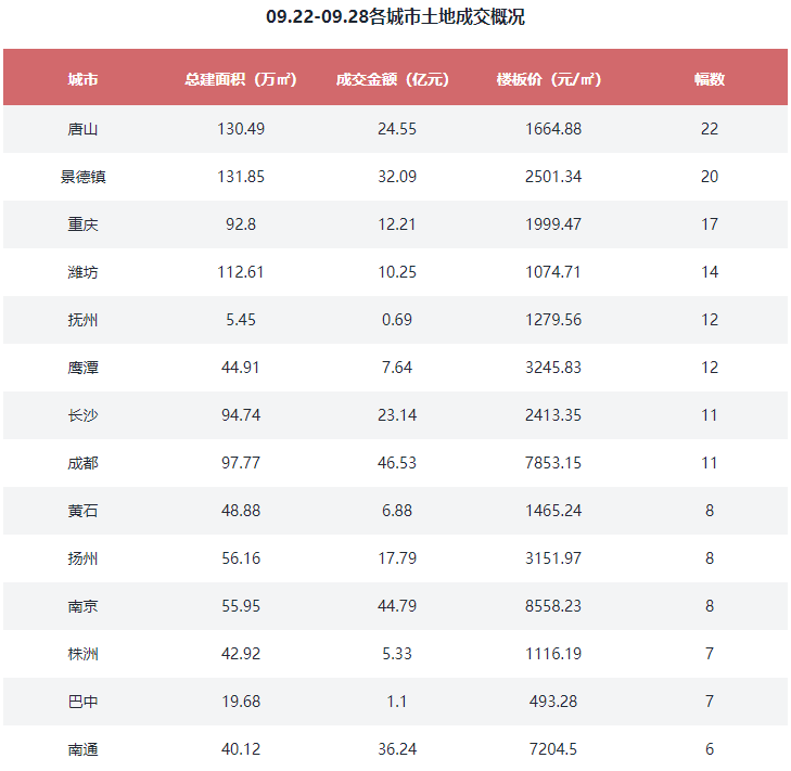 2025年全国房地产工程数据(09.22-09.28)周报|房企拿地篇