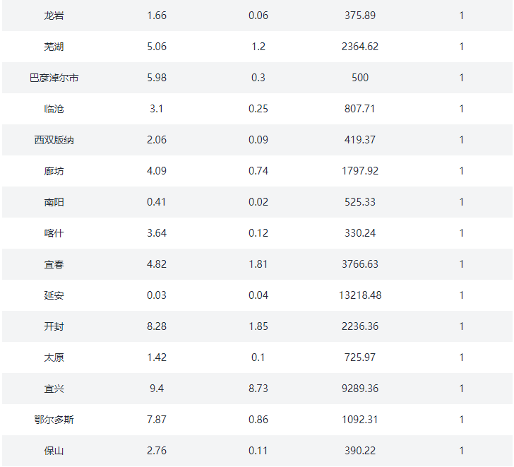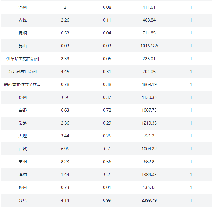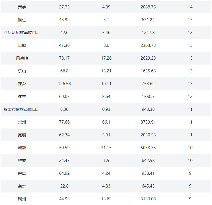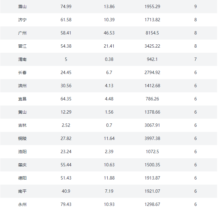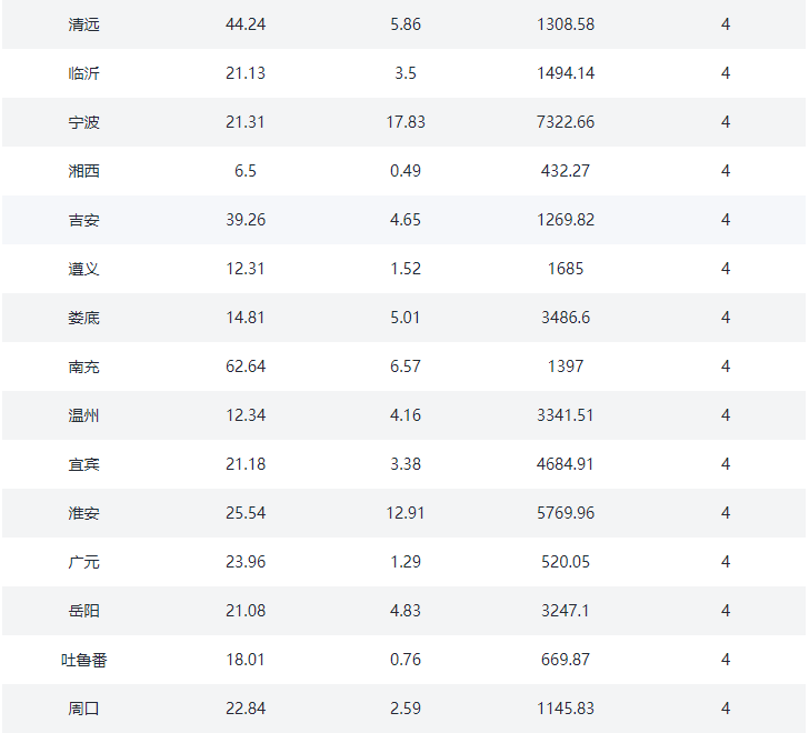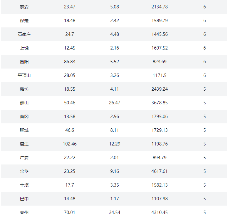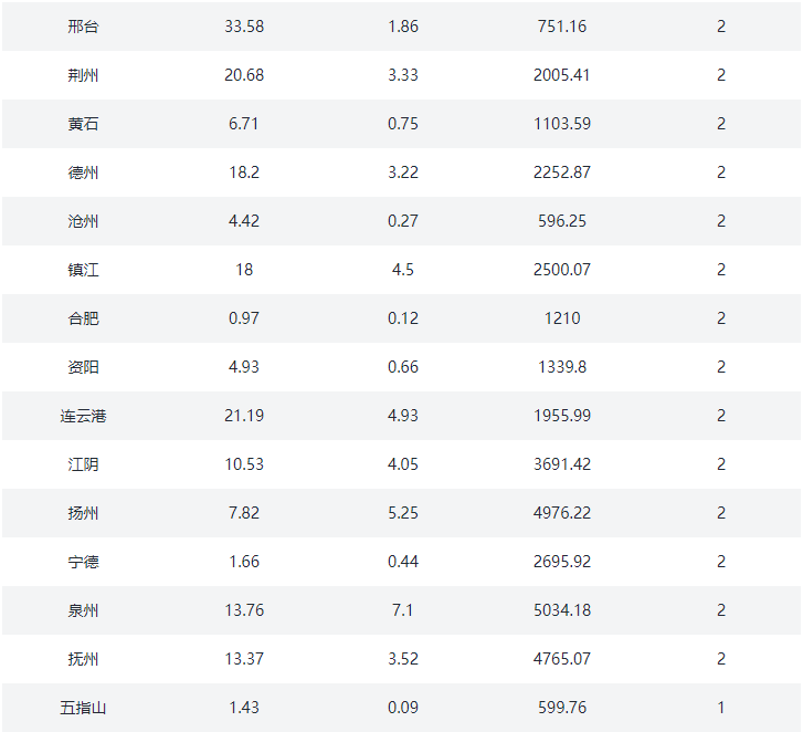③.三四线城市:沧州、东营、邯郸、肇庆、汕头、丽江、三亚、扬州、江阴、泰州、芜湖、漳州、九江、常熟、廊坊、保定、清远、张家港、昆山、镇江、宜兴、淮安、舟山、湖州、盐城、晋江、西宁、洛阳、宜昌、丽水、马鞍山、三明、衢州、义乌、秦皇岛、株洲、衡阳、岳阳、承德、韶关、遵义、德阳、海宁、慈溪、余姚、海门、启东、太仓、安庆、淮南、六安、桐乡、日照、邢台、张家口、常德、衡水、资阳、德清、嘉善、大厂、固安、儋州、陵水、香河、淳安、建德、桐庐、池州、益阳、定安、保亭、澄迈、万宁、燕郊、文昌、五指山、琼海(78)个