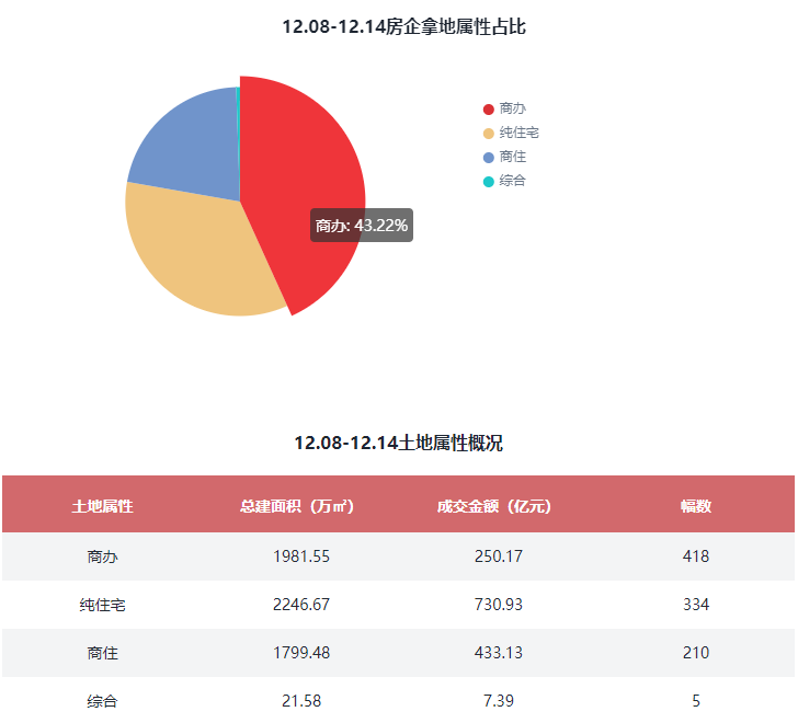 本周纯住宅共成交334幅,总建面积:2246.67万㎡,较上周减少80幅;商住、商办及综合共成交633幅,总建面积:3802.61万㎡,较上周减少60幅。
