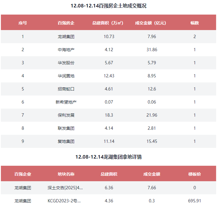 2025年全国房地产工程数据(12.08-12.14)周报|房企拿地篇